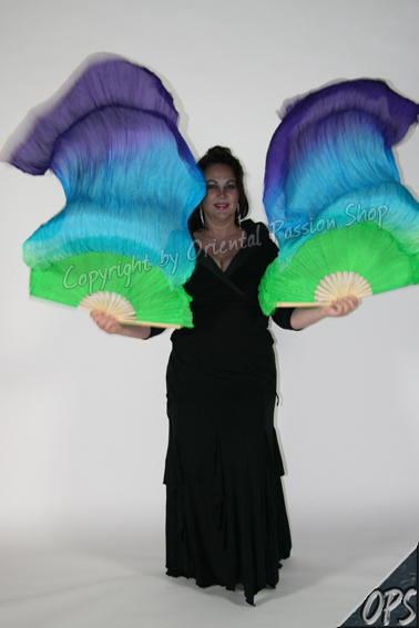 Die Schleier der Fächerschleier sind aus leichter reiner, qualitativ hochwertiger Seide, so dass sie wirklich bestens fliegen. Speziell für Seide entwickelte Farben betonen den eleganten Seidenglanz.
