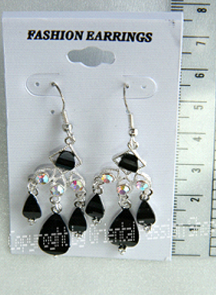 Rhinestone - Earrings, silver colored, with black and chrystal AB stones