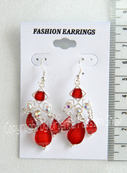 Rhinestone - Earrings, silver colored, with red and chrystal AB stones